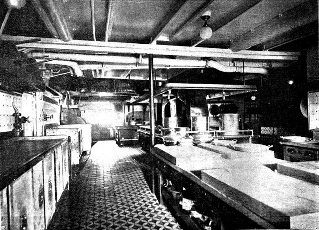 Küche 1. Klasse eines Ozeandampfers um 1900: