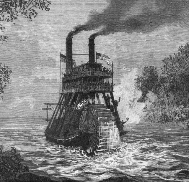 Copyright: Elmar Oberegger Bisher hatte man auf den Flüssen mit Segel, Ruder oder Stangen ausgerüstete Barken verwendet, deren Beförderung stromaufwärts schwierig war. Im Mai 1817(n. Gerstner 1839: 36) fuhr das „Dampfschiff Enterprise“ von New Orleans stromaufwärts auf Mississippi und Ohio bis nach Louisville . Früher hatte man für diese Strecke ganze 3 Monate(!) gebraucht, die „Enterprise“ war jedoch schon in 25 Tagen am Ziel. Die Bewohner von Louisville waren aufgrund dessen höchst entzückt und brachten dem Kapitän größte Ehrungen entgegen. Und in der Tat: Eine derartige Fahrzeitverkürzung war schlicht „revolutionär“. Die „Enterprise“: New Orleans-Louisville in 25 Tagen!(1817).