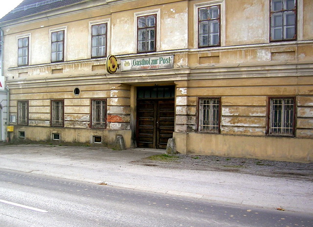 WIKI GEMEINFREI Obwohl das Wort grundsätzlich einen „Öffentlichen Verkehr“ andeutet, so war es dennoch nur mit kaiserlicher Genehmigung benutzbar. Angesichts permanenten Missbrauches wurde schließlich die Ausweispflicht eingeführt. Im Mittelalter waren öffentliche Wagen-Reisen inexistent. 1610 wurde sodann in England die Institution der Postkutsche eingeführt, welche alsbald auch den Kontinent eroberte. Im deutschen Raum war ab der Mitte des 18. Jahrhunderts das System der „Ordinari-Post“ etabliert, welches einen „fahrplanmäßigen Verkehr“ bedeutete.(s.d. BEYRER 1992) Die Reise mit der Postkutsche konnte zwar im Lauf der Zeit immer rascher abgewickelt werden(teilweise war man in der Tat schneller als mit der Eisenbahn!), war aber ziemlich unbequem, wurde man doch ständig durchgeschüttelt. Vor diesem Hintergrund bildeten sich folgende abwertende Bezeichnungen für dieses Transportsystem heraus: „Walkmühle“, „Marterkasten“, „Ackerkarren“ oder „Knochenknacker“. Eine Speise- und Erholungsmöglichkeit auf der Reise war in der Regel durch „Gasthöfe zur Post“ geboten. Der „Gasthof zur Post“ in Voitsdorf(= Pyhrnstraße/OÖ):