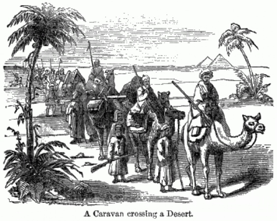 WIKI GEMEINFREI Aber nicht nur Händler schlossen sich aus Schutzgründen zu Karawanen zusammen, sondern auch Pilger auf dem Weg nach Mekka, Medina oder Karbala. Angeführt wurden diese von einem Emir-el-Haddsch. Kleine Pilgerkarawane bei Jericho(1891):
