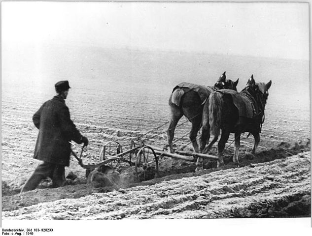 WIKI GEMEINFREI Später wurde entdeckt, dass man mittels Einführung des sogenannten „Rades“ den Reibungswiderstand nahezu ausschalten konnte. Diese Harmonisierung von Fahrzeug und Untergrund war ähnlich revolutionär wie die Einführung der Eisenbahnschiene, durch welche sodann das Verhältnis Rad-Untergrund harmonisiert werden soll. Mit Rädern ausgestatteter Pflug: