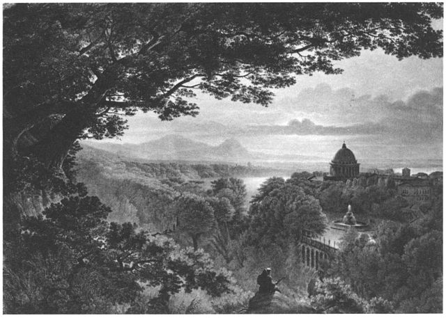 WIKI GEMEINFREI Die erste schriftlich überlieferte okzidentale Pilgerreise fand im Jahr 333 AD statt, also fast 150 Jahre vor dem offiziellen politischen Zusammenbruch des Weströmischen Reiches.(s.d. FOSTER 1982; EISNER 2000) Durchgeführt wurde diese von einer Einzelperson. In zweierlei Hinsicht ist diese Reise bemerkenswert: a) Sie führte über Land. Route: Bordeaux(früher Burdigala)-Norditalien-Donautal-Konstantinopel-Kleinasien-Syrien-Heiliges Land. Üblicherweise wählte man damals den direkteren und bequemeren Seeweg. b) Der Anonymus verfasste ein Reisehandbuch zu dieser Route(= „Itinerarium Burdigalense“). Von besonderer Bedeutung für den zukünftigen Pilger war das Verzeichnis der Herbergen . Bild „Landschaft mit Pilger“(Schinkel, 19. Jh.):