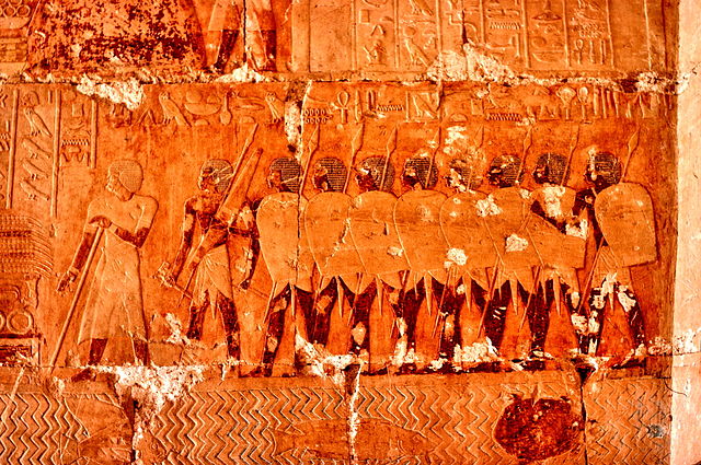 III: „Einsamer Wanderer“ und „Karawanen-Genosse“. Unstrukturierte Betrachtungen. In den vorzeitlich-antiken Quellen stoßen wir immer wieder auf die Figur des „Einsamen Wanderers“. Zu verweisen wäre etwa auf das „Gilgamesch-Epos“, auch aber auf die Inschrift am Thermopylen-Denkmal: „Wanderer! Kommst Du nach Sparta, dann verkündige dorthen, Du habest uns hier liegen sehen, wie das Gesetz es befahl!“ Andererseits existierte ganz zweifellos das Phänomen der „Karawane“, also der „Reise-Gemeinschaft“. So reiste um 1500 BC die ägyptische Königin Hatscheput bis in den somalischen Raum.(vgl. BAUER 1973: 15; TYDLESLEY 1997) Einer bildlichen Darstellung ist klar zu entnehmen, dass hier der Frage des „Selbstschutzes“ größtes Gewicht beigemessen wurde: Bewaffnete stehen dort im Vordergrund. Darstellung zur Reise von Königin Hatscheput(um 1500 BC):
