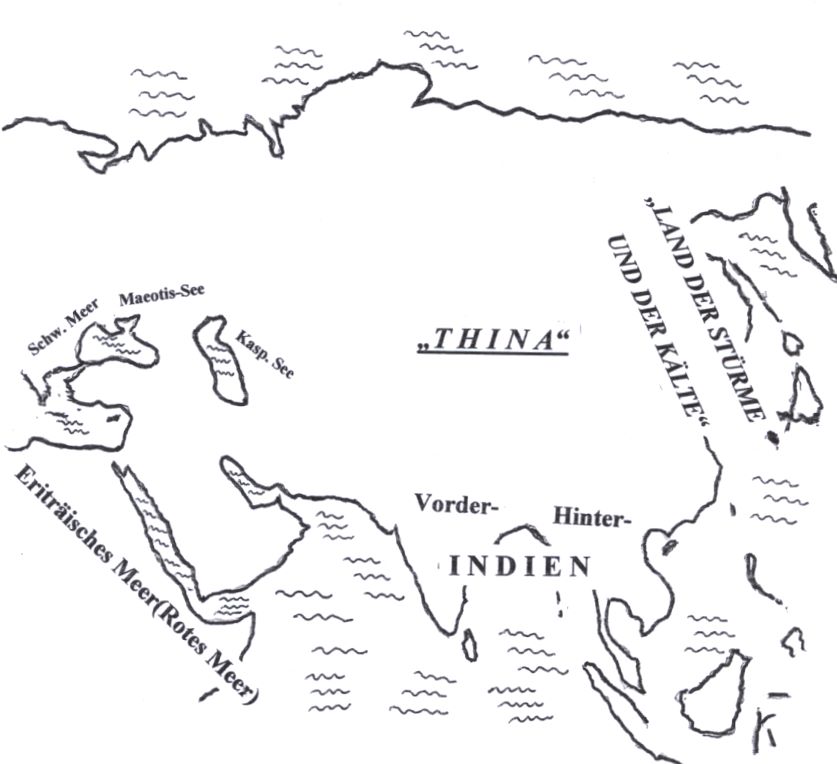 Copyright: Elmar Oberegger Dieses „Thina“ scheint hier interessanterweise also einerseits als „Polis“, andererseits als „Topos“ auf. Ist hier tatsächlich „China“ gemeint? Die beigegebene Kartenskizze jedenfalls legt dies nahe. Der Name „China“ ist übrigens vom „Quin-Königreich“(778-207 BC) abgeleitet. Die Bezeichnung „Thina“ stammt aus der buddhistischen Kultur und bedeutet u.a. „Morbides Staatswesen“. Ist der Autor des Periplus hier einer (bösartigen) Falschauskunft eines Buddhisten aufgesessen? Wir wissen es nicht. Per Segelschiff wurden später die „Großen Entdeckungsreisen“ unternommen, Amerika wurde entdeckt, es war bis ins 19. Jahrhundert hinein der unbestrittene König der Meere. Altes Segelschiff: