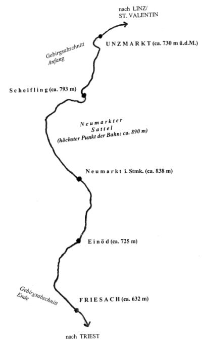 Im Text wird noch der alte Verlauf geschildert. Bis 1912 mußten die Züge Linz-Triest in Glandorf „gestürzt“ werden.