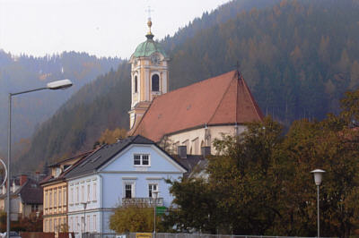 Von Kalwang ab wenden wir uns westlich und sehen links die Friedau’sche Gewerksverwaltung, und im Hintergrunde, gleichsam als Abschluss des Panoramas, den Reitling mit dem Gösseck. Später passiren wir das Lamberg’sche Schloss Ehrnau, einstens ein Stammgut der steierischen Grafen Breuner, mit sehenswerthen Gemälden und Jagd-Emblems. Der Markt ist eine Viertelstunde von der Station entfernt und besitzt eine schöne Pfarrkirche, und eine Kirche der Ligurianer, welche ein vorzügliches Altarbild enthält. In montanistischer Beziehung ist eine 10 Minuten vom Orte entfernte Grafitgrube beachtenswerth (...)