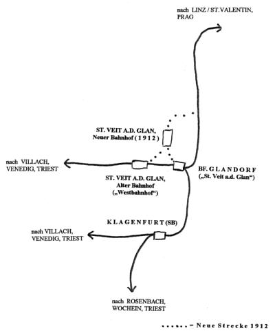 Die Umgestaltung des St.Veiter Bahnhofsstandortes bis 1912(schematisch):