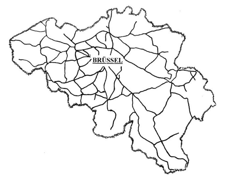 VII: Die erhebliche Ausdünnung des Netzes seit 1945. Trotzdem hohe „Qualität“ in heutiger Zeit. Vergleicht man obige Eisenbahnkarte aus 1928 mit der heutigen, so wird die Ausdünnung des Belgischen Netzes offensichtlich.(s. Karte) Das heutige Netz: